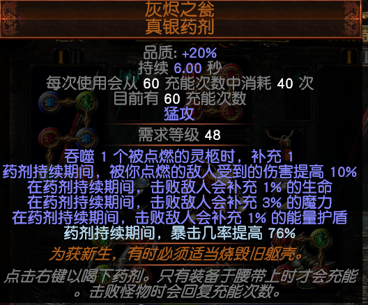 上面那条击败敌人提高10more,打单体boss的时候用的,平常可以换正常的生命药剂