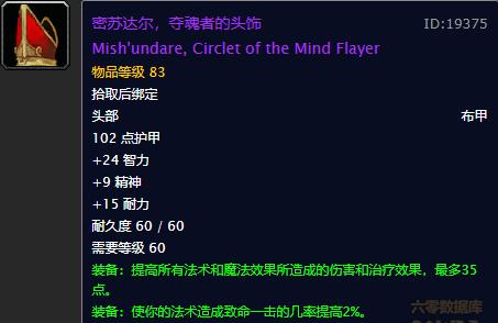 不妨拿法师的T2头来比较下,密苏达尔不光加35点法伤,还加2%的暴击;与之相比,T2头就显得很垃圾了,只加32点法伤,其余属性真心没啥用处。