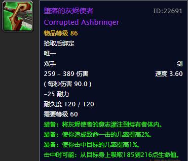 尽管灰烬使者加2%暴击和1%命中,但却并不加攻强,而且吸血效果其实真的很鸡肋,所以若从实用性角度说起,灰烬使者其实真心很一般。