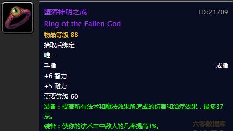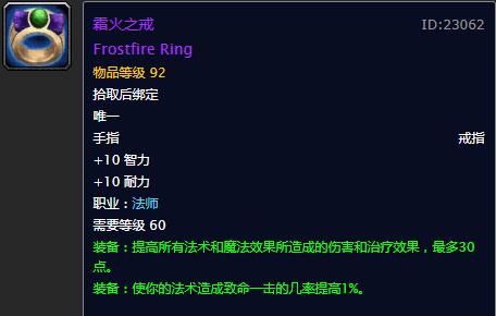 另一方面,法师的T3戒指也只不过加30点法伤,也不如堕落神明之戒。毫无疑问,堕落神明之戒绝对是怀旧服加法伤最多的戒指,没有之一。不仅如此,这戒指还加1%的法术命中。