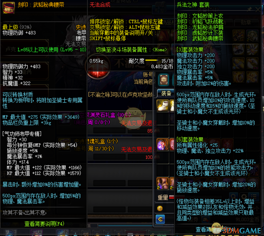 这套装备如果加上兵法套,起码在卢克和漩涡中是可以混得风生水起的,但是在普雷当中,还是一个迷。毕竟普雷现在门槛很高,是否要牺牲一个输出的位置来放一个混子的位置,这就是团长们要考虑的问题了。