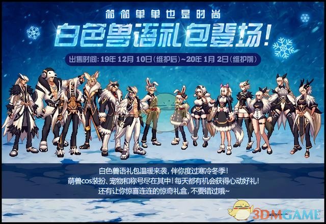 2018年韩服上架了白色兽人礼包,当时玩家猜测国服也会上线,但是非常可惜并没有出,不过今年的圣诞礼包上架了这一个礼包,对于暖暖党玩家来说绝对值得收藏一套,不过这一套和以往的雪人套不同,本次还有称号和宠物,还记得韩服是增加22点的单属强称号,如果有正好给小号用一套过渡,韩服当时的售价是17900点券,国服希望价格不要这么高。