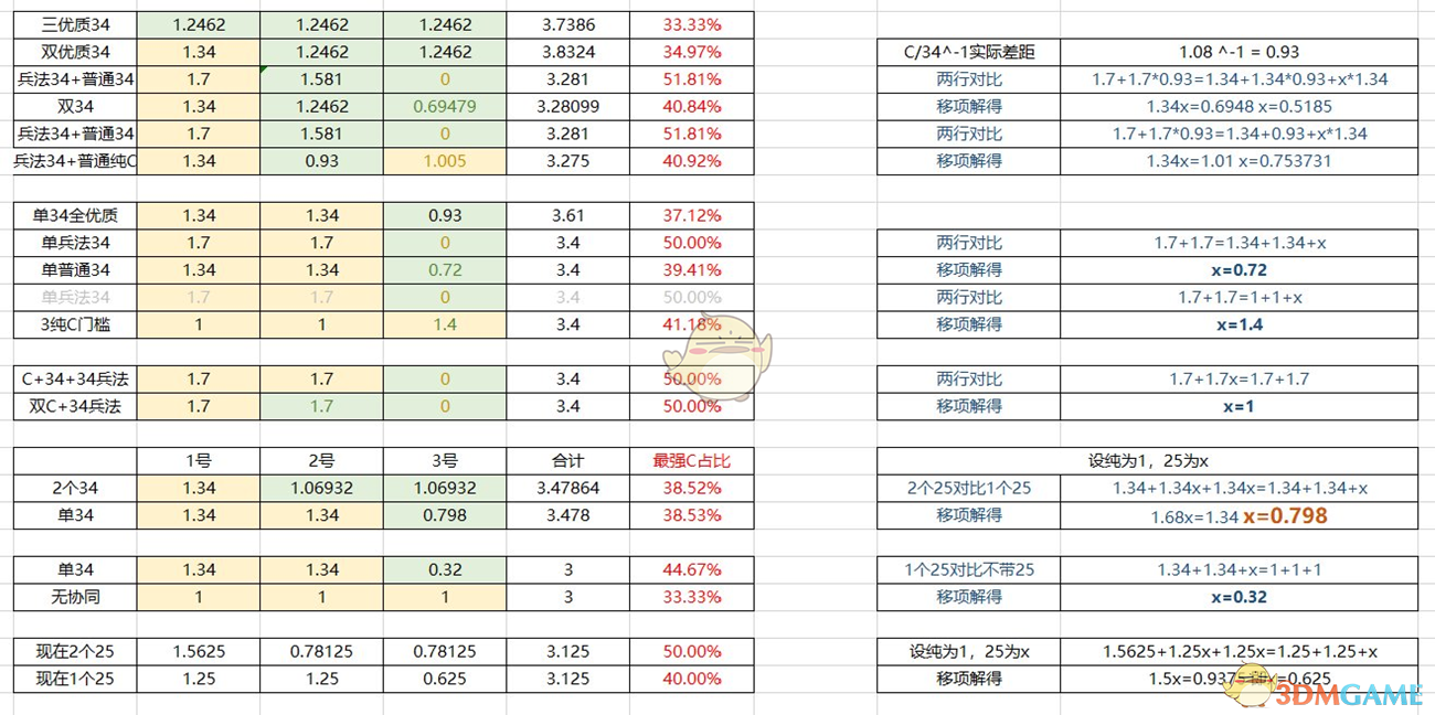 3号申请:3-4:低打造3需要0.72的伤害才能和兵法媲美(相比下高打造34大概是0.93)