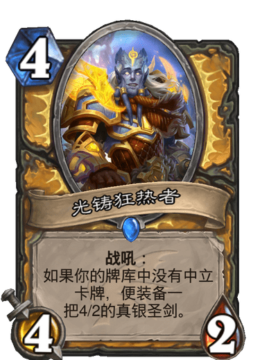 战吼:如果你的牌库中没有中立卡牌,便装备一把4/2的真银圣剑。