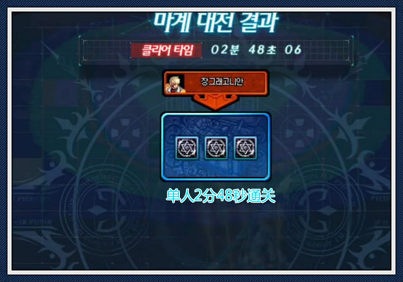 而这位光枪玩家,进入单人魔界大战引导模式后,一路的秒怪,机制形同虚设,仅用2分48秒的时间,就通关了副本!要是国服的话,毕业装备下,时间还能缩短!不过,一般来说,毕业装备会选择4人本,毕竟单人护石和符文较少。但是,有国服特色加持,就算装备打造不强,也同样轻松秒掉!