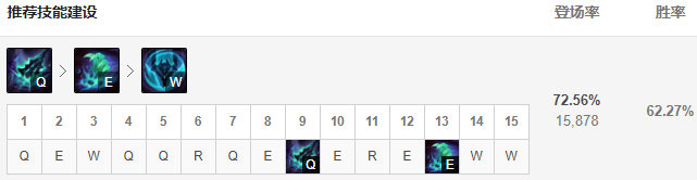 Q:核心的输出技能,进攻效率高;W:能增加护盾、伤害能力;E:重要的控制技能