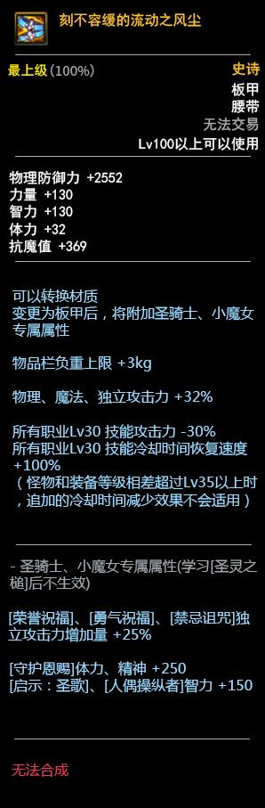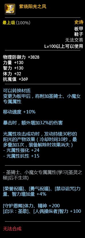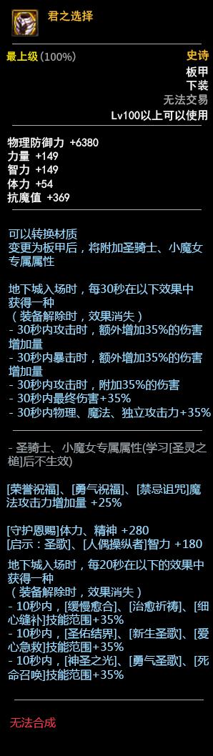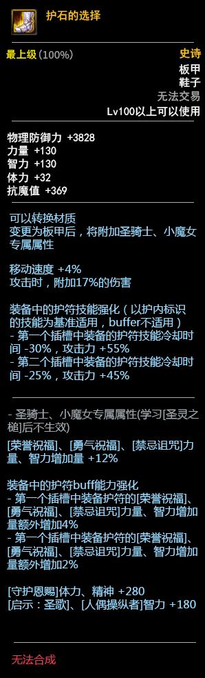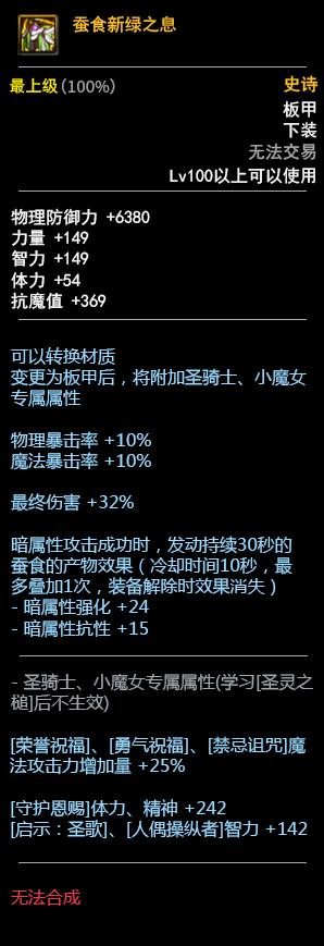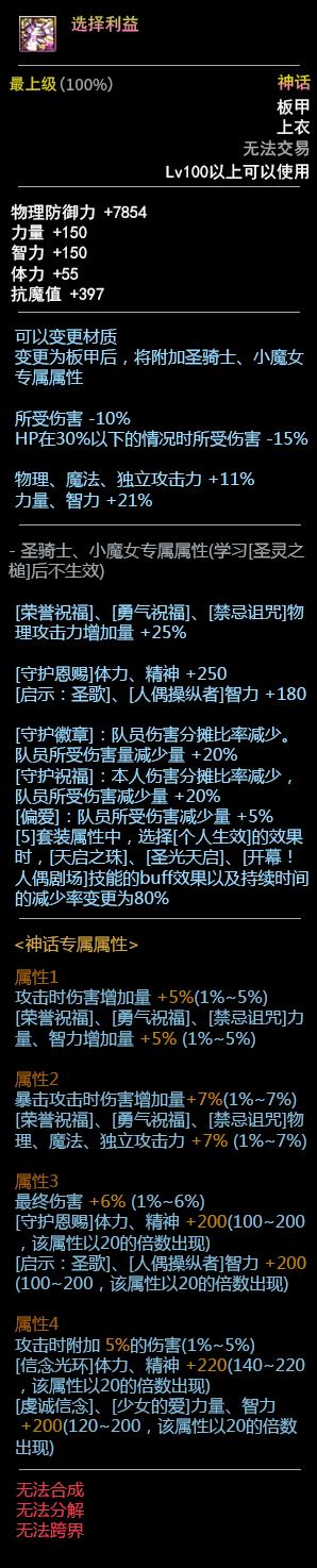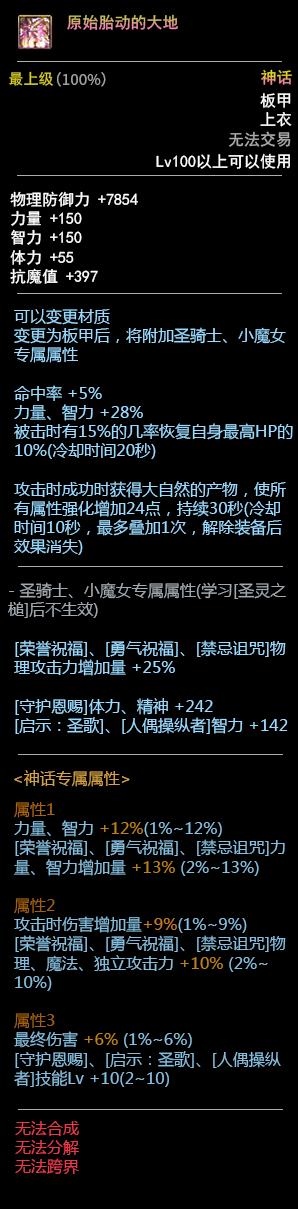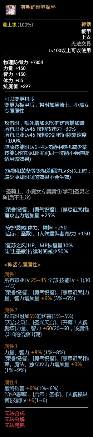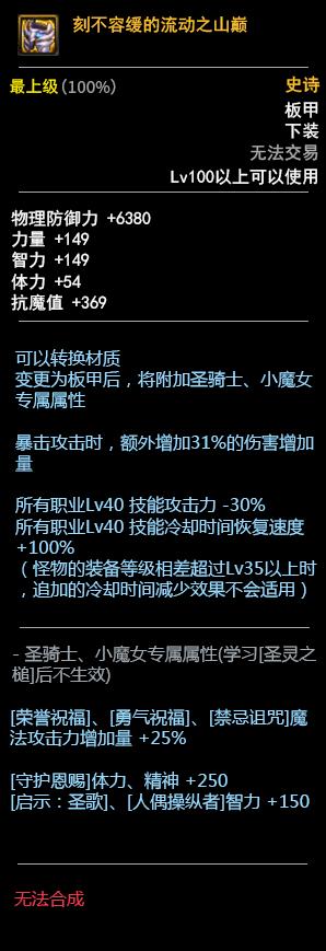 DNF100板甲套装属性