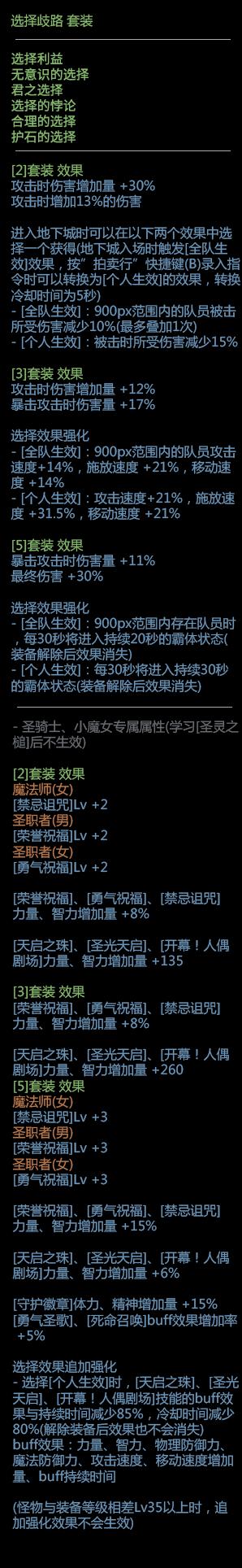 《DNF》100板甲套装属性介绍