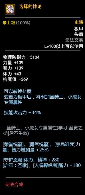 神话装备可以替代一件100级史诗的上衣部位,达成5件套效果的同时又拥有神话装备的专属属性。