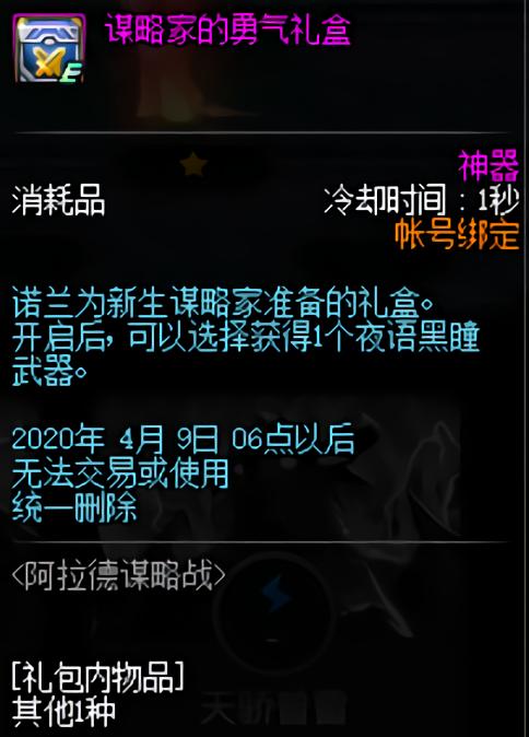 所以在爆料送夜语黑瞳的当晚体验服再次更新回档,并在12月21日时论坛再次爆料最新的更新内容,在玩家通关至普雷区域的奖励谋略家的勇气礼盒内容变更,现在改为了50个永恒的黑瞳石,所以对玩家来说这一个奖励比夜语黑瞳实用多了,这一个材料每个玩家都能用的,只是可惜夜语黑瞳能值200多个黑瞳石,这只送50个感觉不够用,毕竟给小号弄一把夜语黑瞳也是不错的。但无论怎么说,这些都是论坛爆料的内容,具体是否还会再次改动需要等官方正式更新爆料。