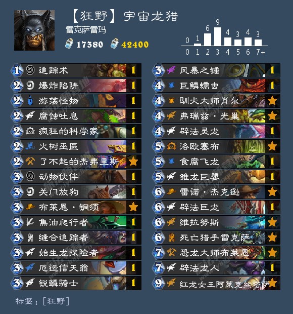 总之这套打所有主流卡组都有不俗的胜率,是环境中的佼佼者,推荐给狂野的猎人玩家们,祝你们都能打出好成绩。