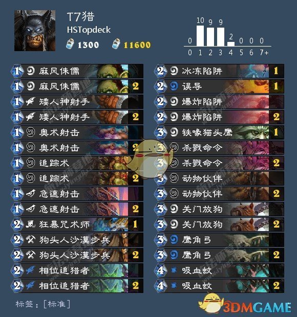 打脸猎强势(目前胜率最高的几个卡组之一)的一大原因就是新卡病毒增援,不过这张牌是紫卡,我提供的这套是没有带的,但是各位有尘的话还是非常推荐合成的。