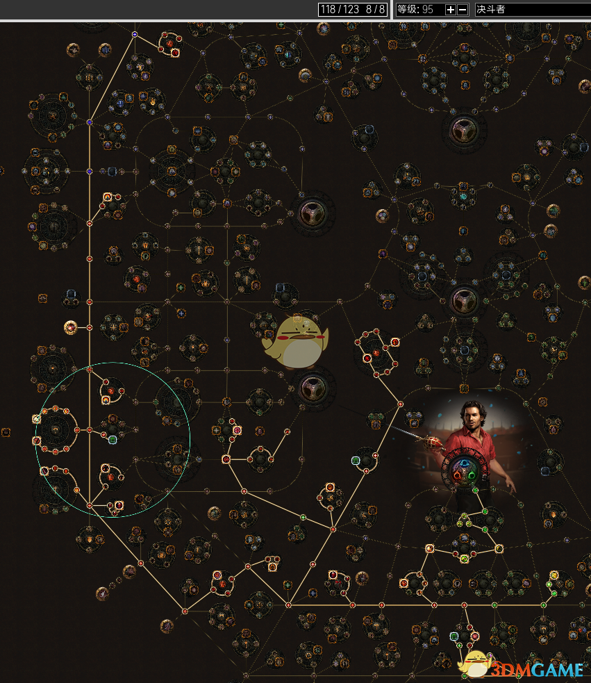 第二,决斗者下方和左方有一些近战双手武器加成的天赋,可能有人会有疑惑,为啥玩弓要加这些天赋,其实很简单,只要你看过就知道,相关的天赋,除了对近战双手武器有加成,往往还有一条“持双手武器时,攻击技能的异常伤害提高”,这条是对流血弓生效的。