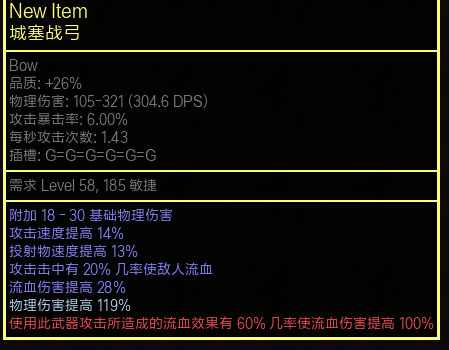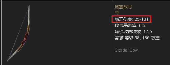 比较多人选择这个底子,城塞战弓。这个底子,有1.25的攻速,虽然慢,影响了手感,但是还是比先驱弓快的,而且有着比较高的物理平均伤害。