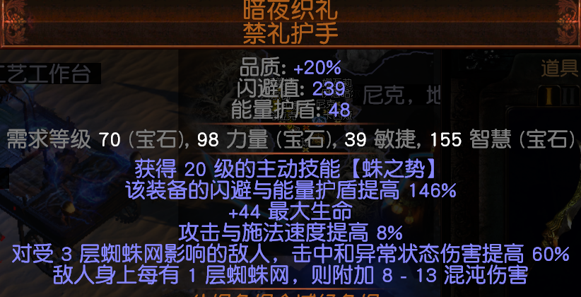 蜘蛛手,获得蜘蛛势,混沌点伤以及攻速生命。造价40C-80C。