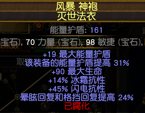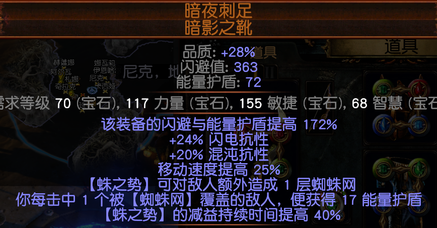 蜘蛛鞋,护盾击回必要的装备。同时补一补电抗和混沌抗。