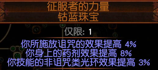 征服者的力量药效8%+药侠升华20%+2个魔力点10%+水溶10%+秘法学8%=54%药效。逝日发射3投射物。