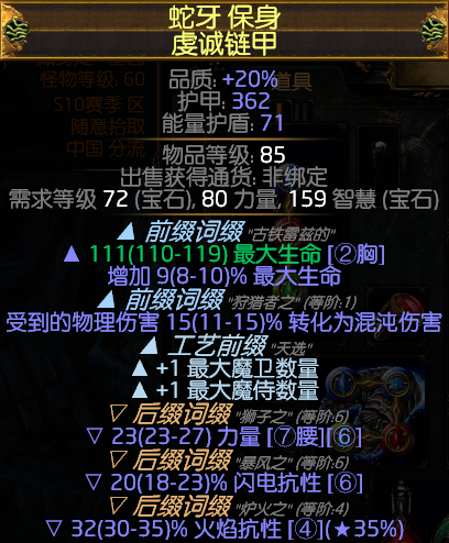 或者 直接买高血量15%转元素伤的塑界衣服也行只是神庙词缀点出来的转伤衣血量更高一点