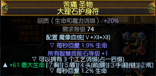 涂油魔像血统 10%生命+1.6%秒回 项链提供大量秒回