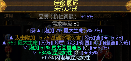 项链:大理石底子上猎人崇高,然后改造洗出智慧+1 多大师就行 要是能洗出猎人后缀2%秒回配智慧+1 当然更完美