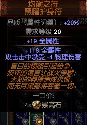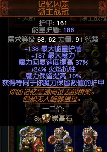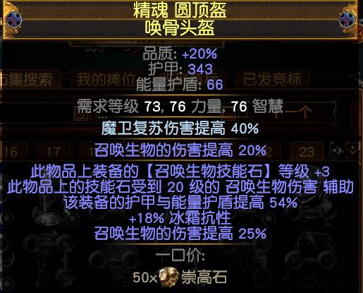 这一套升级下来造价也不菲,不知道我赛季结束能升级几件,但是可以预见升级之后防御(1w5以上es,1w熔岩护盾,常驻4w以上护甲)和伤害都得到极大提升,也说明这个bd的升级潜力很大