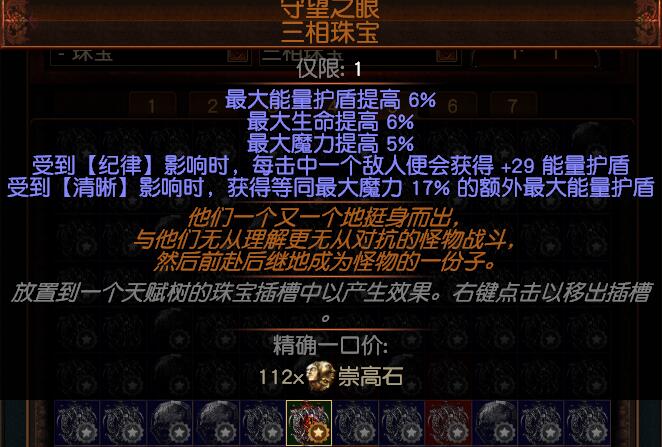 在本赛季大cl比较贵的情况下我选择的是1血ci玩法,本赛季混沌伤害较高,ci的免疫混沌伤害可以极大提高生存能力,但是相对于低血玩法也少了30more的法术加成和更多的光环