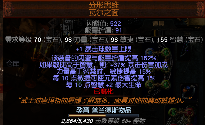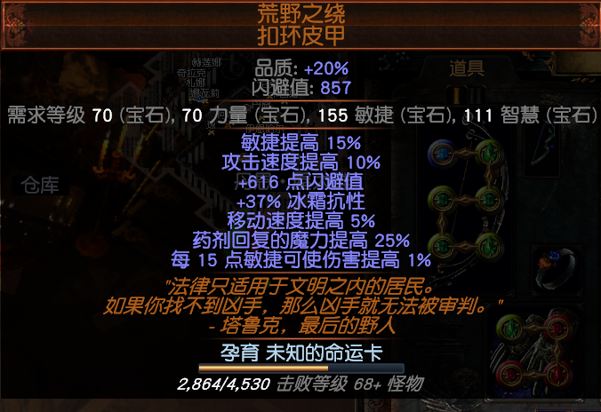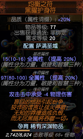 1E左右尽量找数值高的,绑定暗金,涂油萨满圣域,新赛季的内在催化剂可以继续加属性,(这可能是最贵的部位了)
