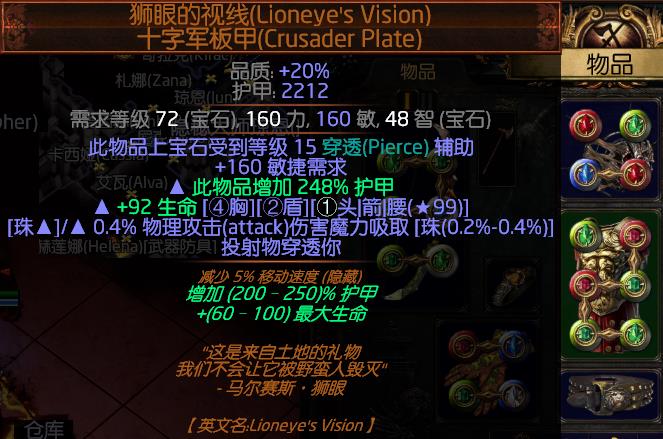 补血补抗性,为了补混沌抗性换的。没啥好说的,有条件的可以用投射物增伤的底子