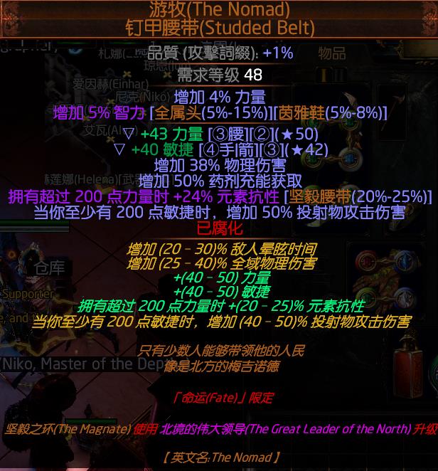 腰带备选还有护体猛攻腰带,不过选这个的话需要微调这个BD。有想法的可以试试看。