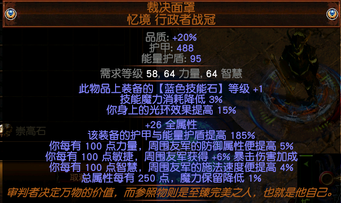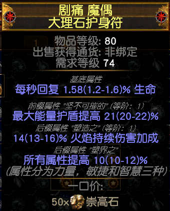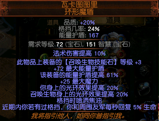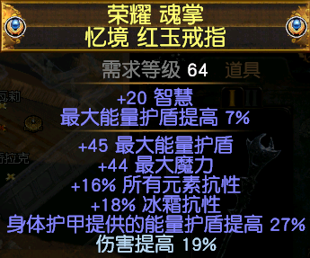 理想词缀:力量>最大魔力>智慧>最大能量护盾>火焰伤害>其他(元素抗性、护甲等)