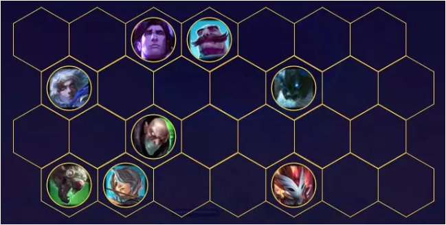 弗雷尔卓德之心-布隆、永猎双子-千珏、寒冰射手-艾希、瘟疫之源-图奇、狂战士-奥拉夫、探险家-伊泽瑞尔、炼金术师-辛吉德、瓦罗兰之盾-塔里克