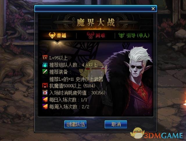 国服分为引导模式单人副本,需要4000抗魔值、组队普通模式5000抗魔值,困难模式5150抗魔值,奖励随难度获得不同数量。每周挑战2次,每天1次,每周四重置次数。副本挑战时间是50分钟。