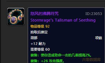 放眼未来,也只有克尔苏加德掉落的“怒风的沸腾符咒”比它好一点点了,不过这可是纳克萨玛斯的最终BOSS,二者根本就不是一个级别的。