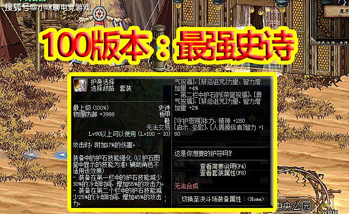 其实100版本的史诗可谓是博览众长(各种Copy),其中一套史诗,提升可谓是非常的强势,除了整体的提升17%的白字伤害之外,还能提升单个技能100%的技能攻击力,而且还有技能冷却时间的减少55,如此一来,不管是什么职业,都能达到极限的伤害,这一件装备堪称是100版本最强的史诗,不管是单件还是套装,都是非常强势的。