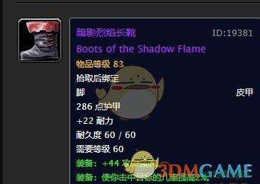 不难发现,暗影烈焰长靴竟然加22耐力、44攻强和2%的命中,这样的属性对于盗贼、野德、猎人、增强萨、惩戒骑、狂暴战而言都是非常适用的,也正因如此,恐怕跨甲争抢又是少不了的事情了。