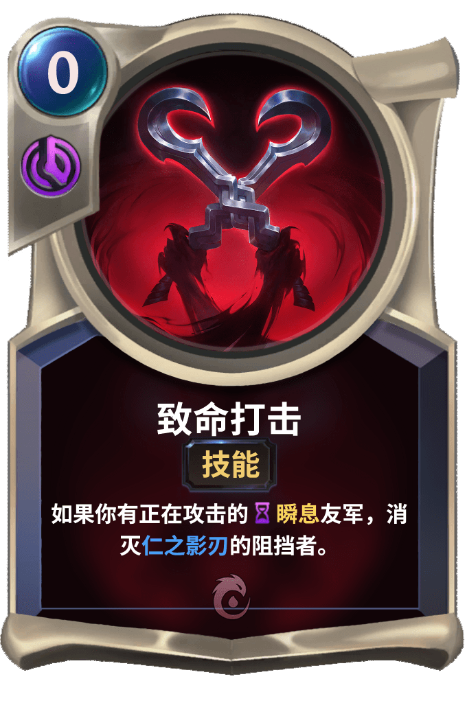 效果:技能 如果你有正在攻击的瞬息友军,消灭仁之影刃的阻挡者。