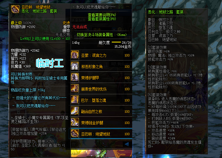当然,100级史诗装备搭配,种类比较繁多,并不一定要穿重甲套。但是,为了追求完美伤害,这重甲是最佳选择。超界普雷升级的“工作服”,无法跟其相比,两者还是存在差距的。