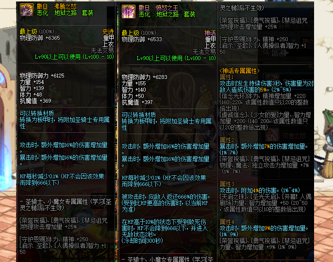 先来看一下,常规的上衣部位,攻击暴击时,能额外增加16%的伤害增加量。神话上衣,就更加离谱,被攻击时,还能向敌人返还666%的伤害。而且,还有专属的神话属性,但需品级调整箱,才能洗出完美属性。