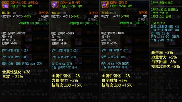 套装:3%双暴、5%力智、8%白字、8%技能攻击力