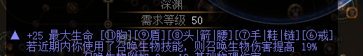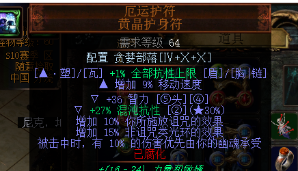 项链:高血高抗+混沌抗的项链、附魔召唤生物移动速度,或者"厄运护符”项链直接来,价值比超高。记得涂油,如果要瓦的话也记得先涂油再瓦。