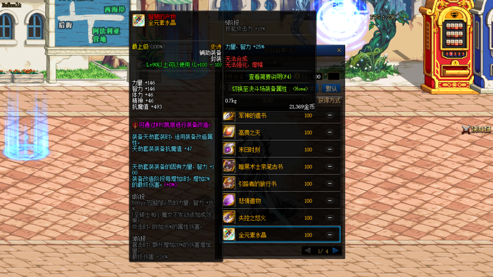 全元素水晶,增加25%的力智,搭配天劫套时,天劫套单件属性增加47点抗魔值,100点力智,每增加一个阶段改造额外增加2%的最终伤害。