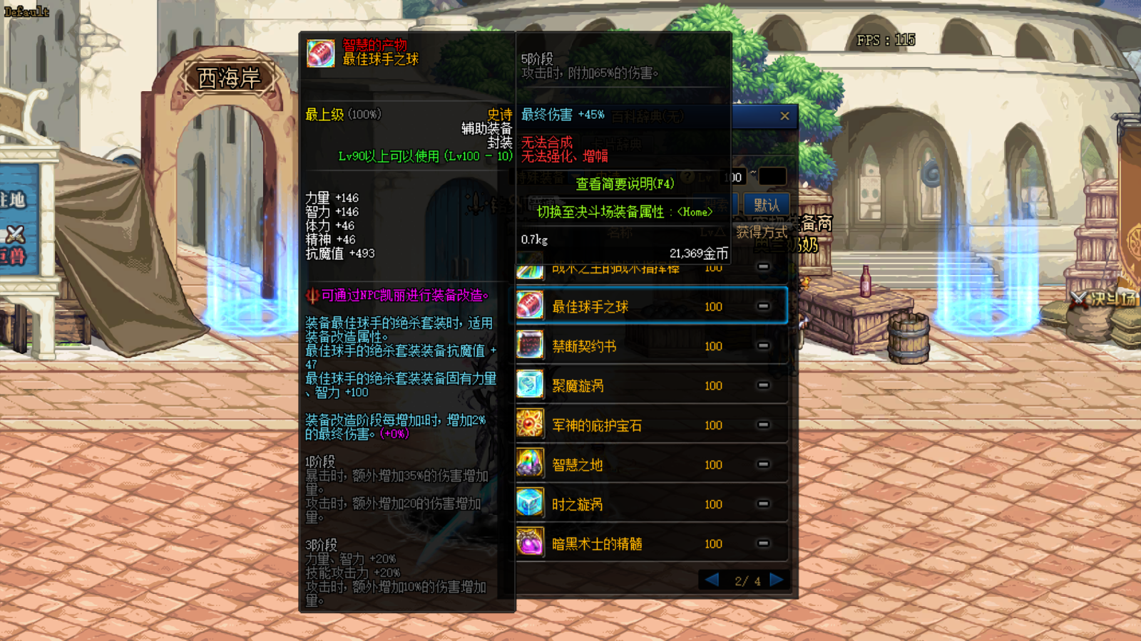 最佳球手之球,增加45%的最终伤害,改造球手套增加47点抗磨,100点力智,每改造一阶段增加2%的最终伤害。
