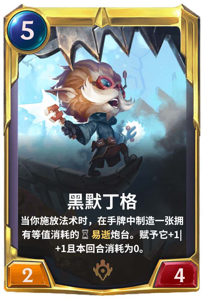 效果:当你施放法术时,在手牌中制造一张拥有等值消耗的易逝炮台。赋予它+1|+1且本回合消耗为0。