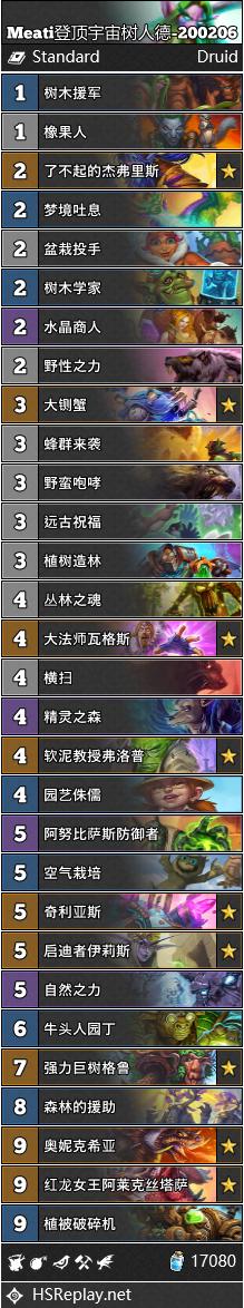 Meati登顶宇宙树人德,昨天大家说这卡组怎么没龙阿,他听到了(误),现在多了一条,森然巨化改成了奥妮克希亚