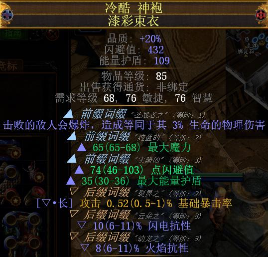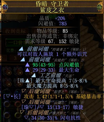 这两条词缀必定需要,至于其他的词缀,不追求完美的话,随缘就好(手动滑稽)完美的就是前缀血量加最大血量百分比,后缀双抗外加基础暴击(再次手动滑稽)不追求完美的衣服造价大概8-10E左右。