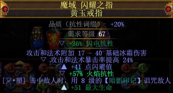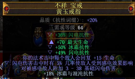 戒指:用来补充抗性,唯一要求一戒指必须有一击中诅咒,暗影印记最为合适。其次最好另外一只戒指拥有法术击中回复生命,从而进一步提升容错率。1-2E左右市集可以买到