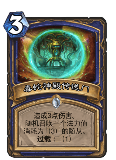 炉石传说是一款非常受到玩家喜爱的游戏,近日新版本外域的灰烬即将上线,目前官方透露出一张萨满新卡,名叫毒蛇神殿传送门,很多玩家都好奇这张卡片的效果是什么?下面一起来了解下吧!