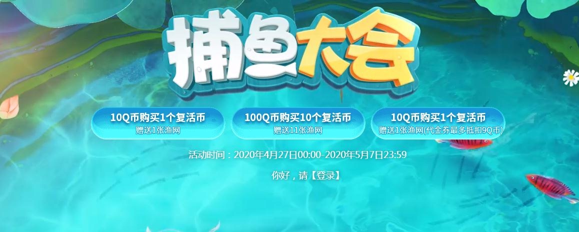 购买:10Q币购买复活币1个可获得渔网1个, 100Q币购买复活币10个可获得渔网11个;活动期间,仅限掌上道聚城购买可额外获得渔网1个,单个QQ账号限领1次;拥有代金券的玩家,可以使用代金券抵扣购买复活币并赠送渔网,一次最多抵扣9个代金券,一旦代金券使用后无法退还(下单后未支付,订单被系统取消之后或手动取消之后会返还抵扣的代金券);