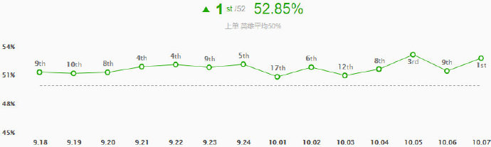 狗熊的胜率在10.7版本提升8位,位于版本第一,在韩服已经是位于顶尖层次的上路。