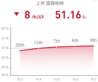 国服狗熊的胜率近期都很稳定,徘徊在6-8位,表现也不错,在国服也很适合上路冲分。